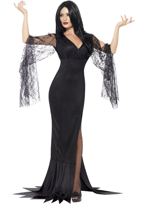 Immortal Soul Halloween fancy dress costume consisting of long black dress with attached draped black lace sleeves. Add some Halloween make up for ...