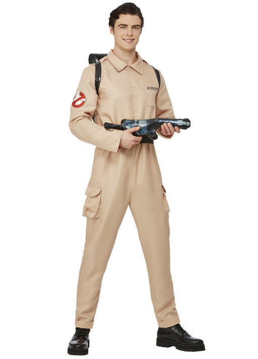 Licensed Ghostbusters men's fancy dress costume with beige jumpsuit and inflatable backpack and gun. Size Chest Waist Inside Leg Small 34''-36...