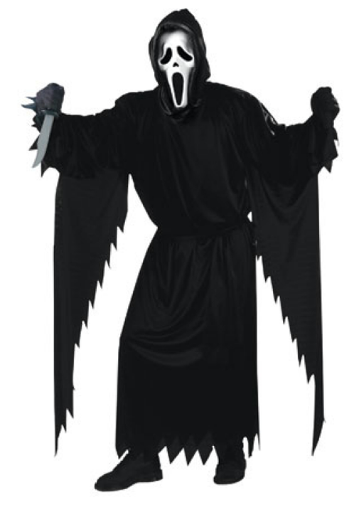 Scream ghost face costume contains black hooded robe with drape sleeves, the infamous ghost mask and belt. Size Guide Standard One size fits...