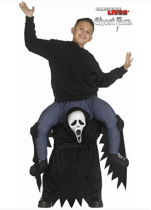 Carry Me fancy dress costume consisting of stand in Ghost Face Scream jumpsuit to create a 'piggy back' effect. Please note - Model is wearing his ...
