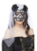 Silver skull Halloween bride face mask with rose decoration and grey veil.