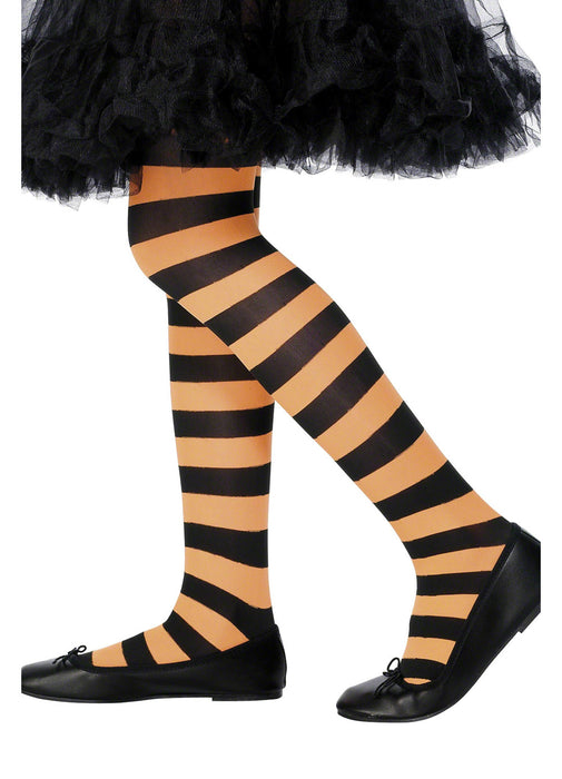 Orange & Black Striped Tights Child