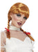 Auburn plaited Porcelain Annabelle Doll wig with fringe and red bows.