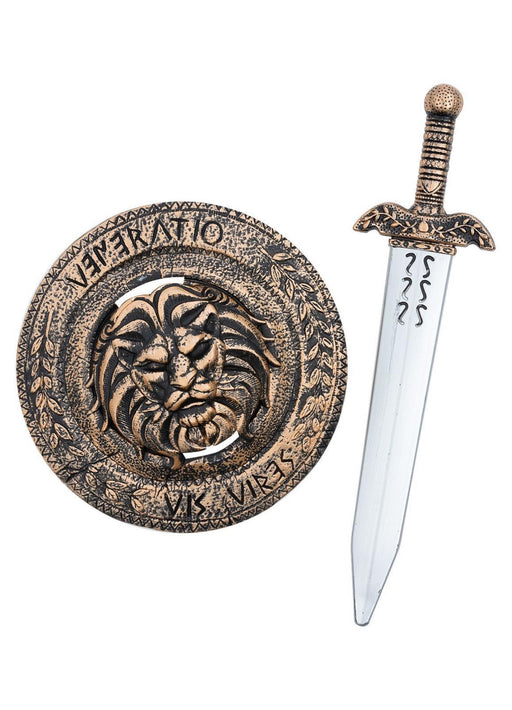 Round lion Roman Gladiator shield measuring 46 cm in diameter along with matching sword.