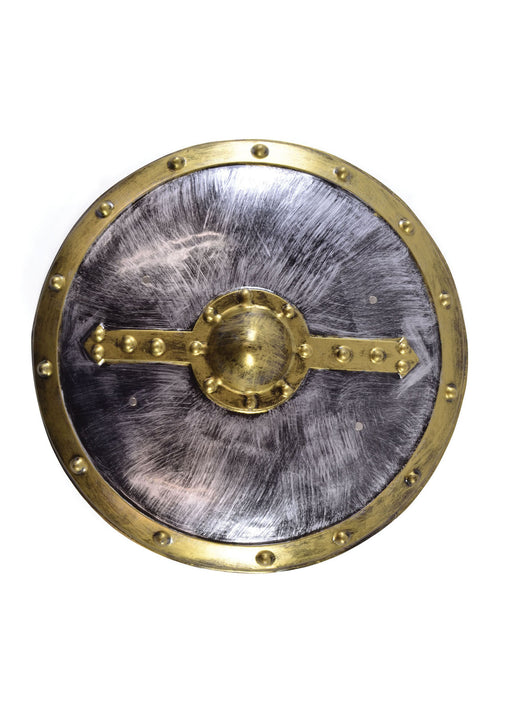 Round warrior battle shield. Could be used for multiple periods in history such as Viking, Roman or Medieval. Measures 48 cm diameter.