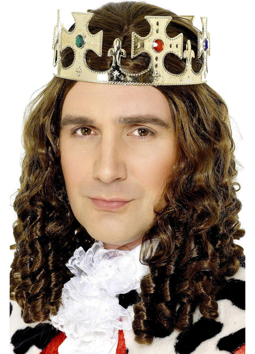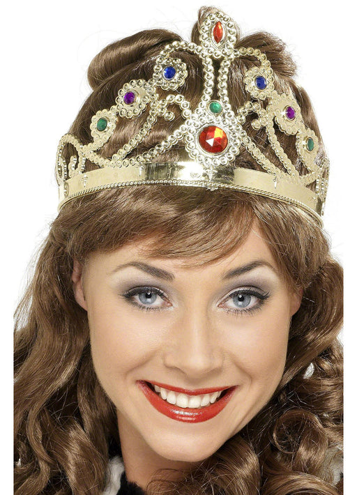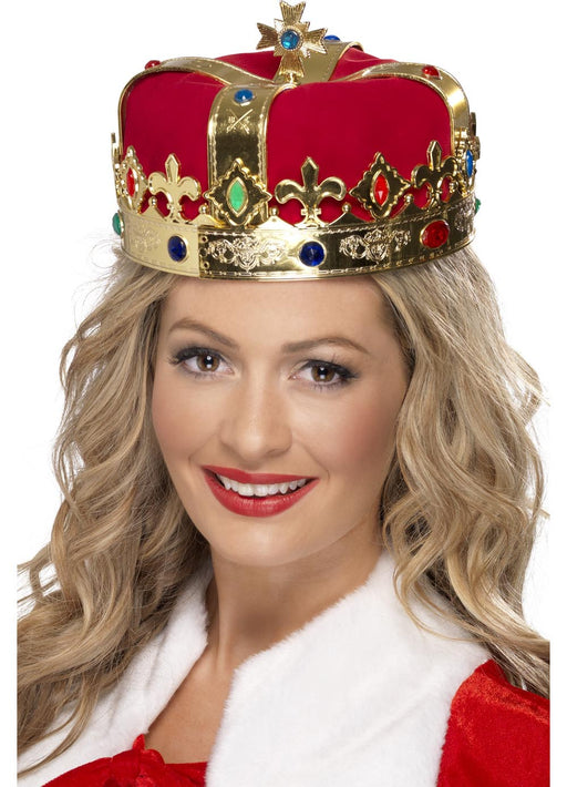 Queen's crown with red fabric and finished with blue, red and green jewels.