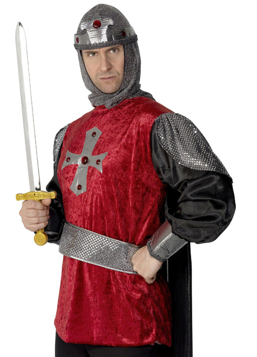 Realistic silver blade and gold handled knight's sword. Length 65cm/25 inches.