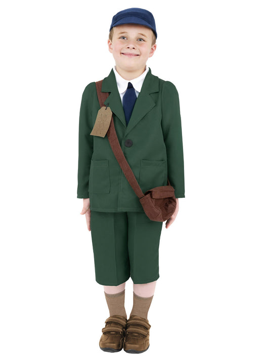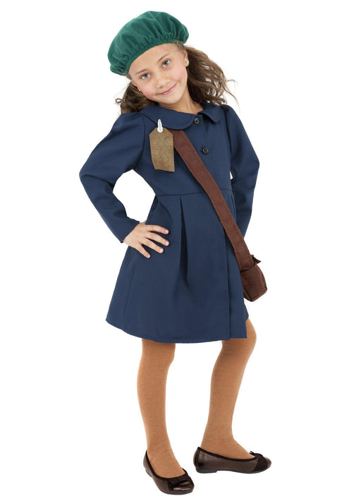 Child's historical 1940's costume in the style of the time when many young children were forced to evacuate Britain's cities for their own safety. ...