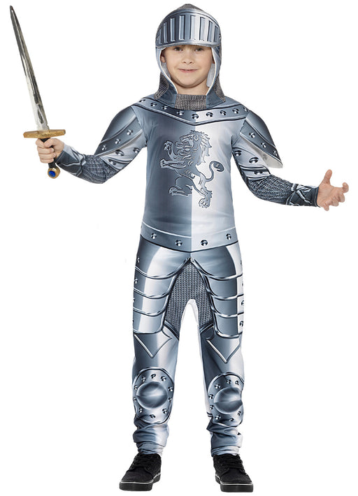 Deluxe Armoured Knight fancy dress costume consisting of printed jumpsuit with armour and chain design & matching headpiece. Size Age Heig...