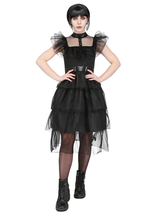 Halloween Gothic School Girl costume with spotted black dress finished with white collar and cuffs. Add one of our wigs to get the character look. ...