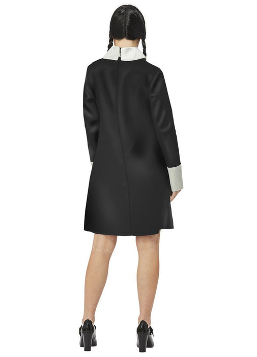 Officially licensed Adams Family Wednesday character costume with dress and black plaited wig.