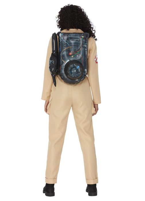 Licensed Ghostbusters ladies beige boiler suit with inflatable back pack gun.