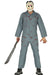Halloween horror boiler suit style killer costume in grey with blood splatter.