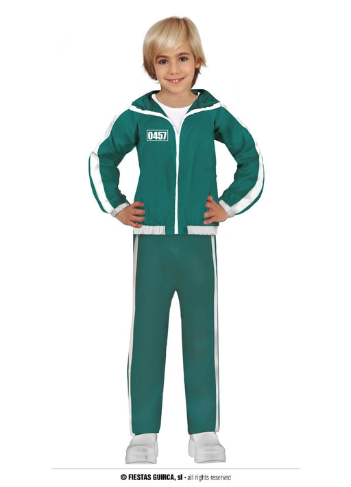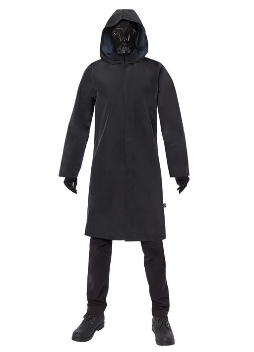Officially licensed Squid Game front man deluxe Halloween costume with black hooded jacket, pair of gloves and character face mask.