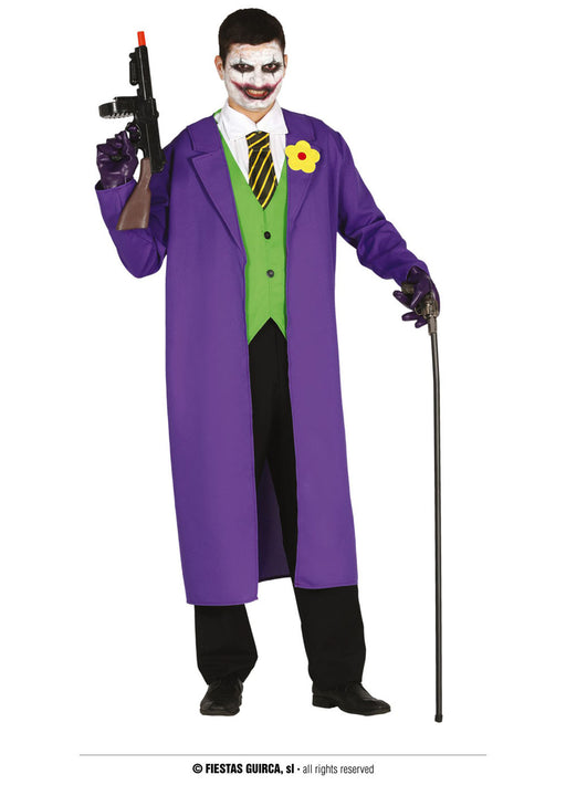 If you think of yourself as a Joker this Halloween then took a look at this Killer Buffoon costume with purple long overcoat with attached flower a...