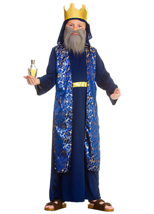 Nativity Christmas play Wise Man costume with long blue deluxe robe with attached belt and waistcoat with headpiece and crown. Please note costume ...