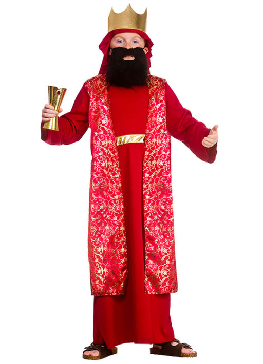 Nativity Christmas play Wise Man costume with long red deluxe robe with attached belt and waistcoat with headpiece and crown. Please note costume p...