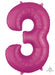 Giant number 3 pink super shape foil balloon measuring approx. 86 cm (34") in height.