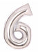 Giant number 6 silver super shape foil balloon measuring approx. 86 cm (34") in height.
