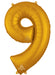 Giant number 9 gold super shape foil balloon measuring approx. 86 cm (34") in height.