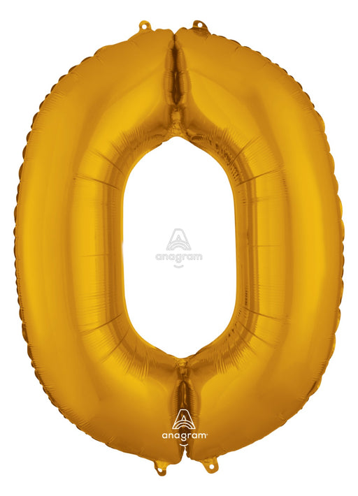 Giant number 0 gold super shape foil balloon measuring approx. 86 cm (34") in height. Click & Collect orders: Balloon supplied inflated with ...