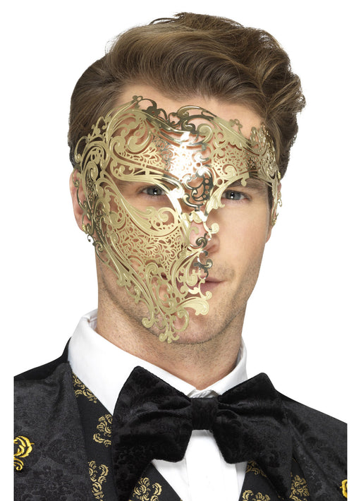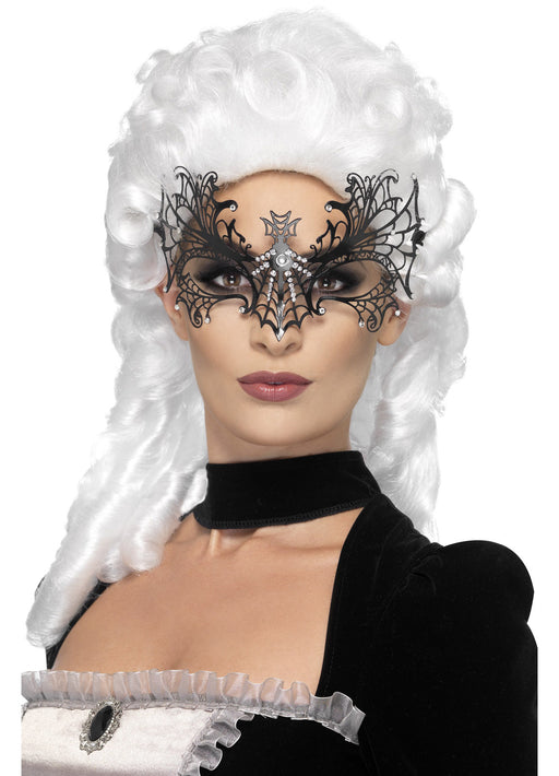 Black widow web metal filigree eye mask decorated with mini diamantes.