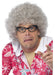 Unisex grey curly granny perm wig with attached elasticated hair net.