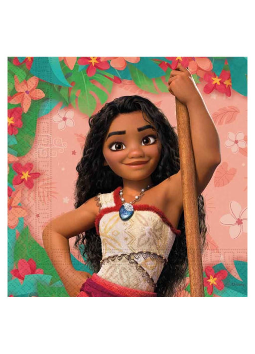 Pack of 20 Moana themed 2 ply party napkins decorated with character design.