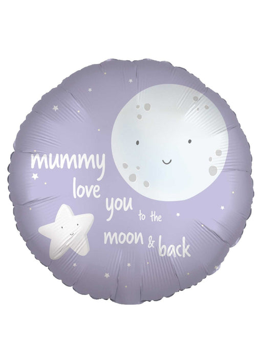 17" round standard foil balloon with the message "Mummy Love You to the Moon & back" design. Supplied deflated and suitable for helium inflatio...