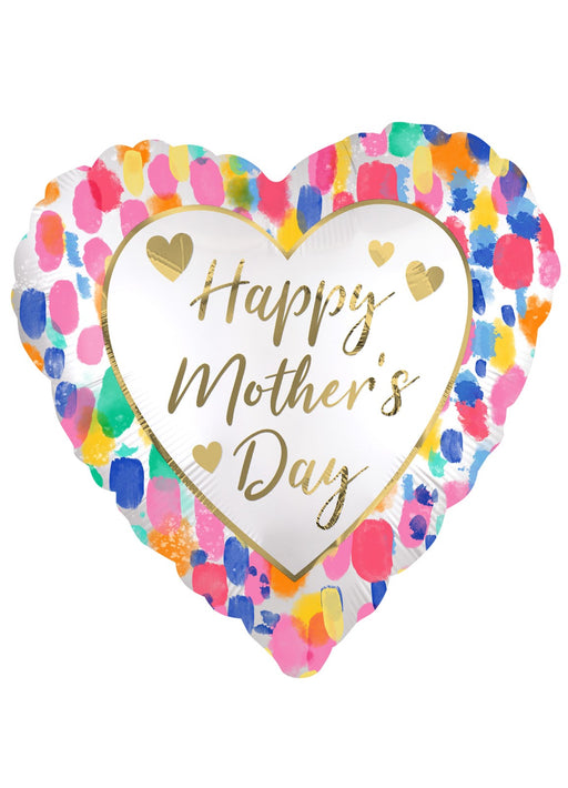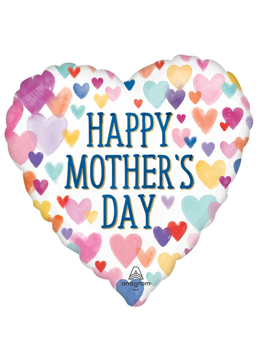 Pretty satin colourful heart shaped Happy Mother's Day 17" foil balloon. Click & Collect orders: Balloon supplied inflated with helium. Deliv...