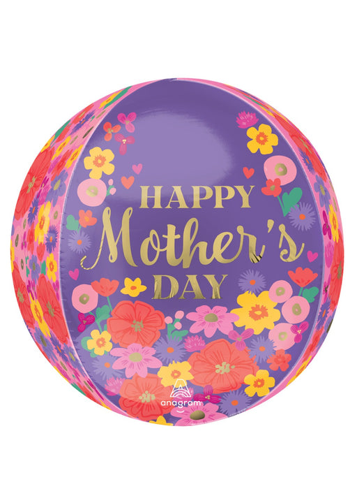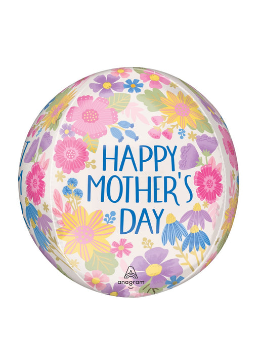 Large round floral Happy Mother's Day balloon measuring 38 cm (15") when inflated. Balloon is as round as a beach ball when inflated. Click &...