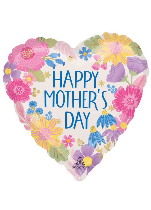 Floral heart Happy Mother's Day 17" foil balloon. Click & Collect orders: Balloon supplied inflated with helium. Delivery orders: Balloon sup...