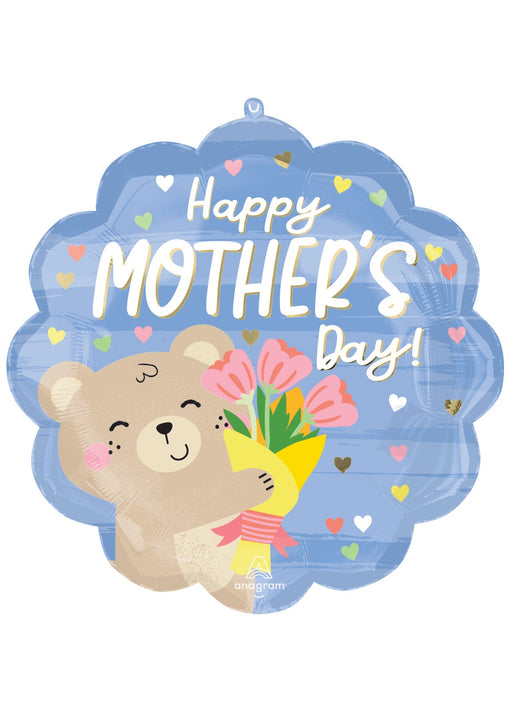 Large supershape Happy Mother's Day bear foil balloon measuring 53 cm x 53 cm when inflated. Click & Collect orders: Balloon supplied inflate...