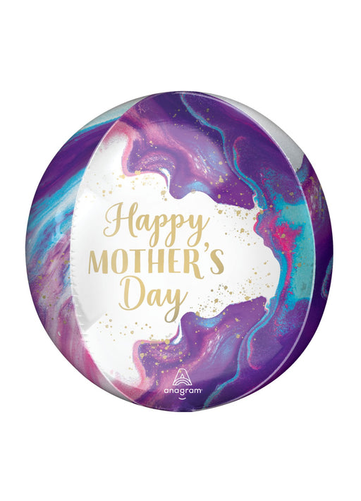 Large round alluring marble Happy Mother's Day balloon measuring 38 cm (15") when inflated. Balloon is as round as a beach ball when inflated. Cl...