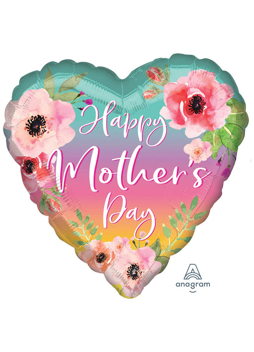 Mother's Day themed ombre design 17" heart shaped foil balloon. Click & Collect orders: Balloon supplied inflated with helium. Delivery order...