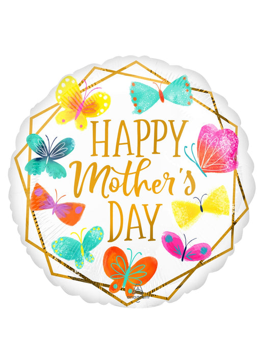 Pretty butterfly and gold trim designed round Happy Mother's Day 17" foil balloon. Click & Collect orders: Balloon supplied inflated with hel...