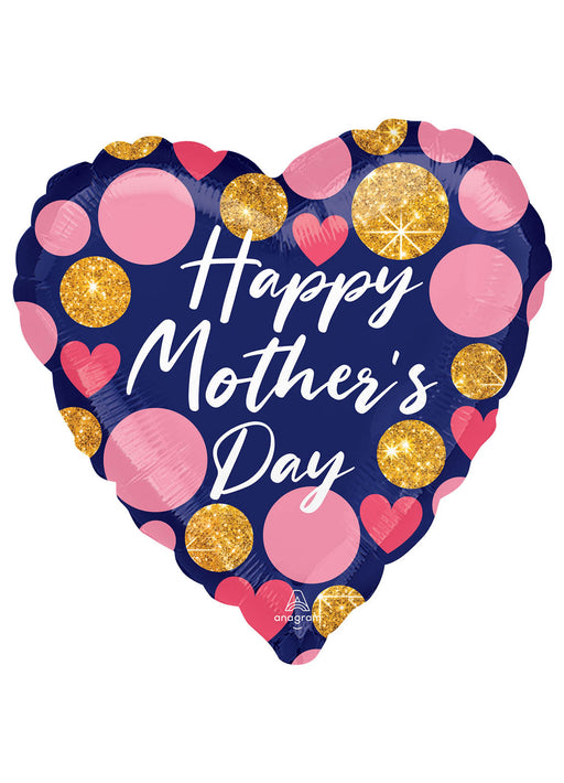 Jumbo heart navy and pink glitter dots Happy Mother's Day foil balloon measuring 71 cm (28 in) when inflated. Click & Collect orders: Balloon...