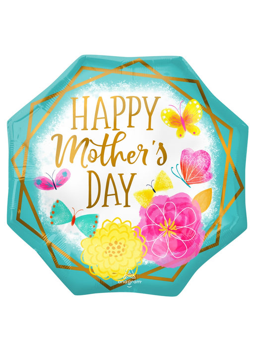 Happy Mother's Day octagon shaped foil balloon with floral design and gold trim measuring 55 cm x 55 cm (22 in x 22 in) when inflated. Click &...