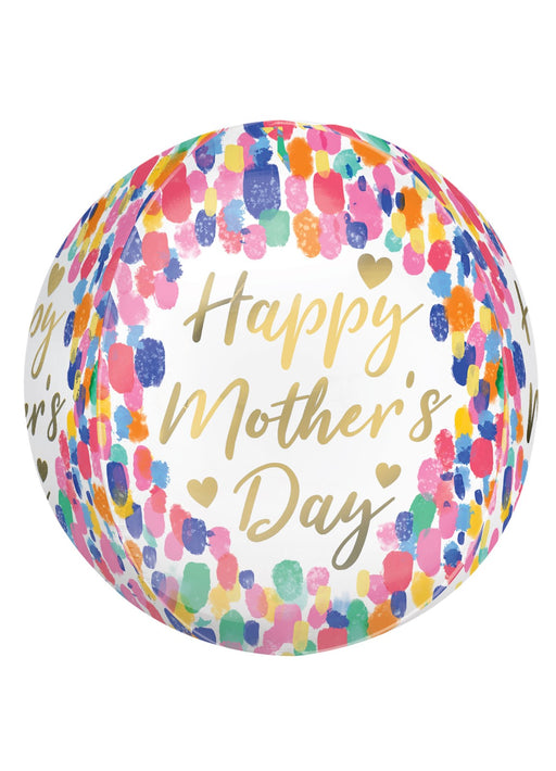 Large round watercolour design Happy Mother's Day balloon measuring 38 cm (15") when inflated. Balloon is as round as a beach ball when inflated. ...