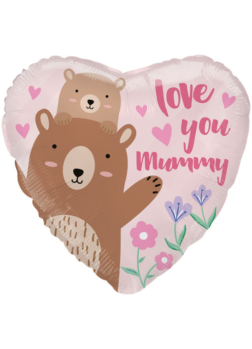 Love You Mummy bear design Mother's Day 17" heart foil balloon. Click & Collect orders: Balloon supplied inflated with helium. Delivery order...
