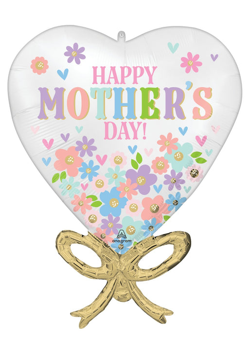 Flower design heart shaped Happy Mother's Day 17" foil balloon. Click & Collect orders: Balloon supplied inflated with helium. Delivery order...