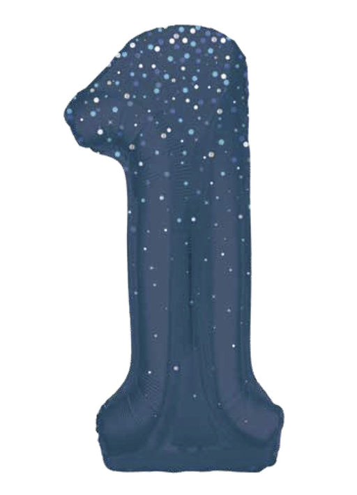 Giant number 1 blue glitz super shape foil balloon measuring 34" in height. Click & Collect orders: Balloon supplied inflated with helium. D...