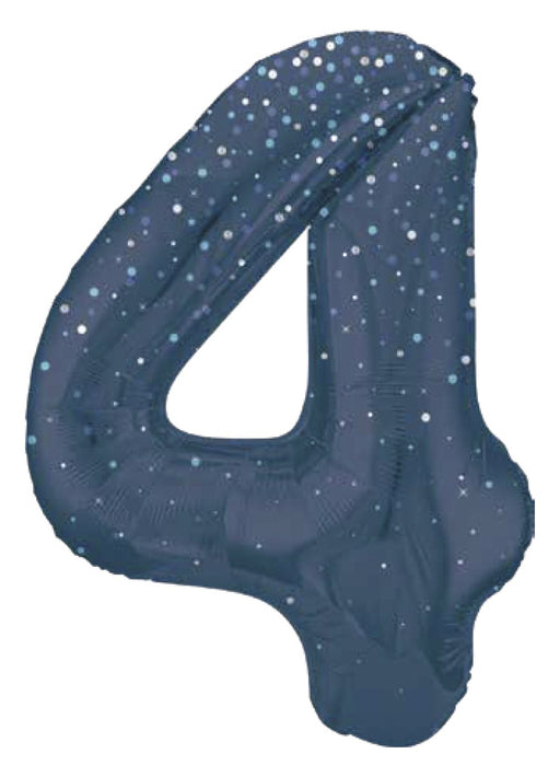 Giant number 4 blue glitz super shape foil balloon measuring 34" in height. Click & Collect orders: Balloon supplied inflated with helium. D...
