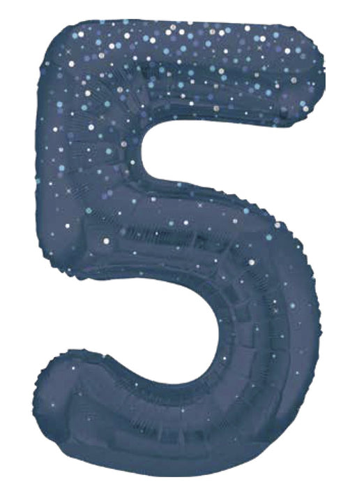 Giant number 5 blue glitz super shape foil balloon measuring 34" in height. Click & Collect orders: Balloon supplied inflated with helium. D...