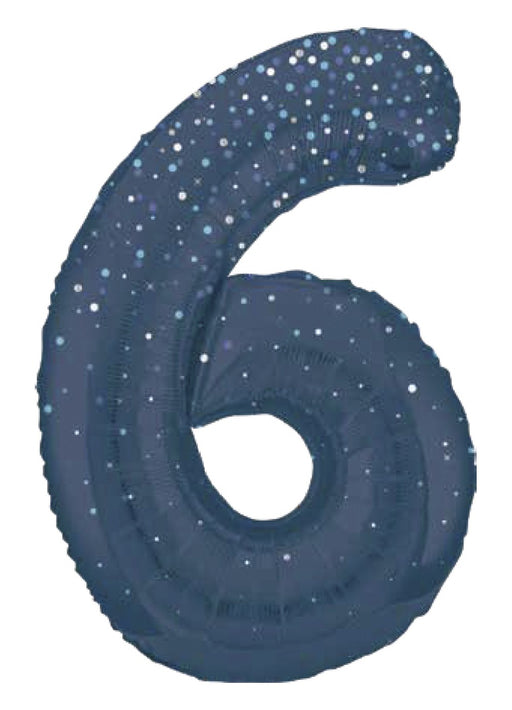 Giant number 6 blue glitz super shape foil balloon measuring 34" in height. Click & Collect orders: Balloon supplied inflated with helium. D...