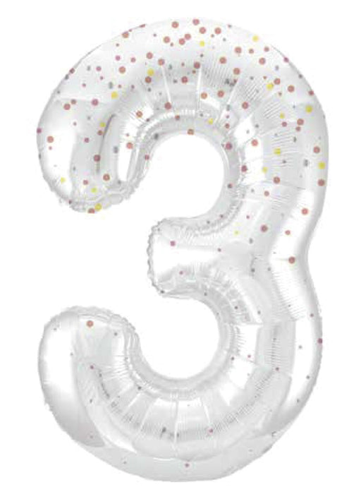 Giant number 3 white balloon with rose gold glitz sparkle super shape foil balloon measuring 34" in height. Click & Collect orders: Balloon ...