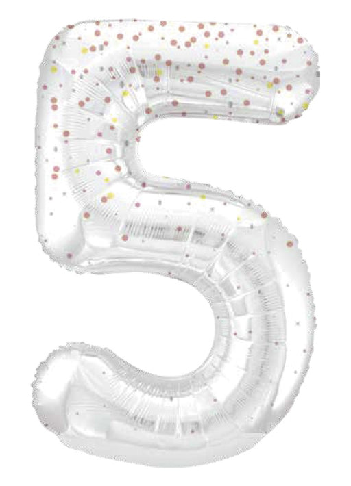 Giant number 5 white balloon with rose gold glitz sparkle super shape foil balloon measuring 34" in height. Click & Collect orders: Balloon ...