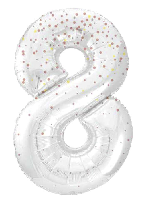 Giant number 8 white balloon with rose gold glitz sparkle super shape foil balloon measuring 34" in height. Click & Collect orders: Balloon ...