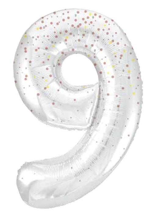 Giant number 9 white balloon with rose gold glitz sparkle super shape foil balloon measuring 34" in height. Click & Collect orders: Balloon ...