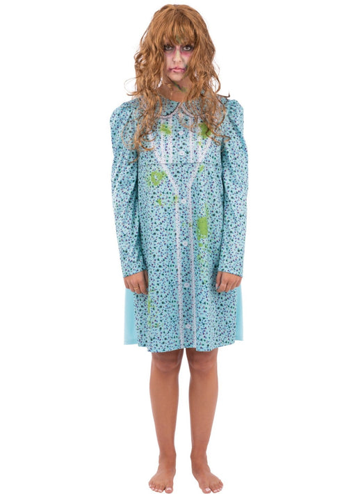 Officially licensed The Exorcist Regan fancy dress costume perfect for Halloween. Comes with patterned green smock dress with vomit print. Wig or ...